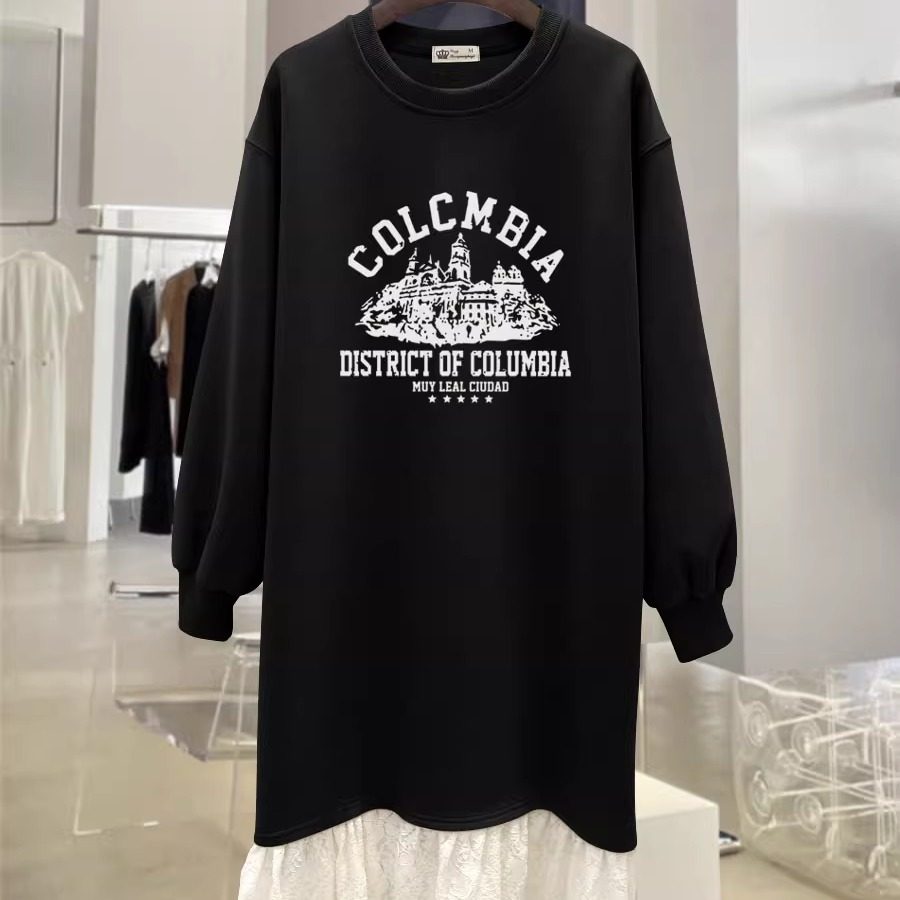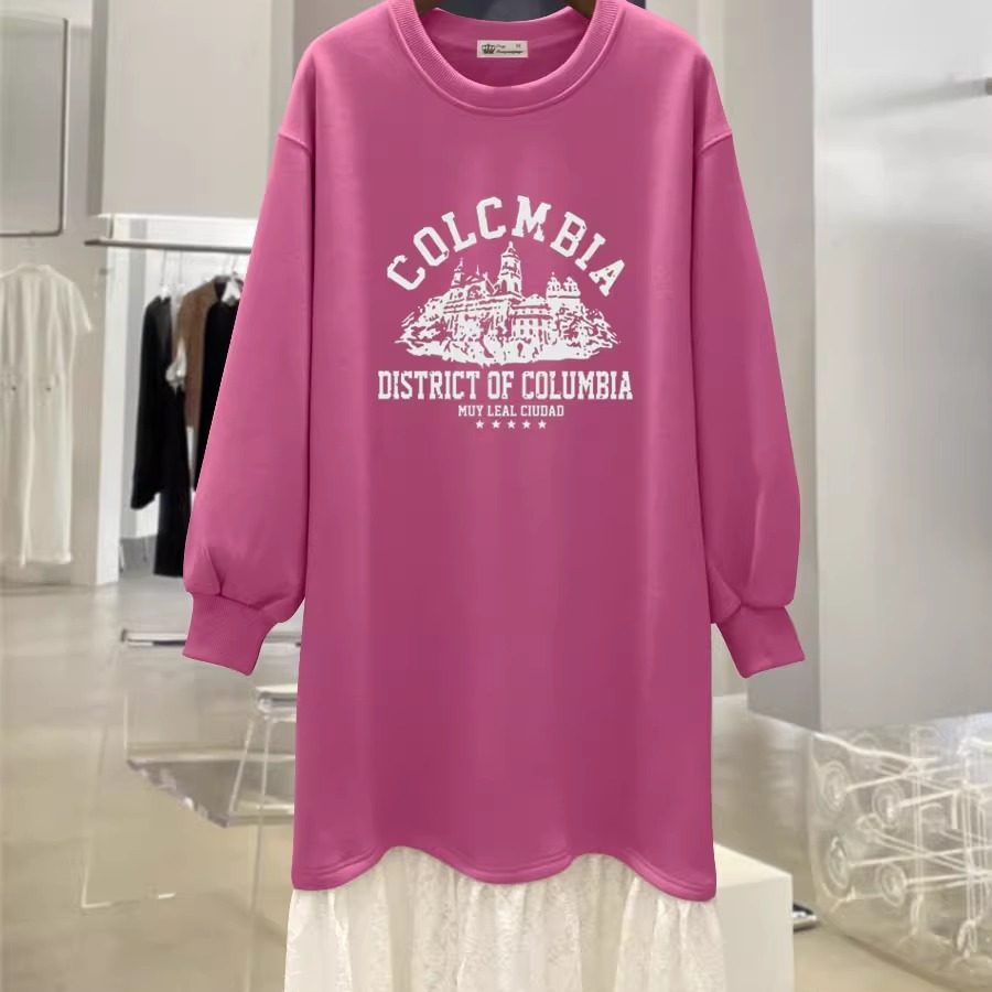 拼接蕾丝假两件卫衣连衣裙棉印花