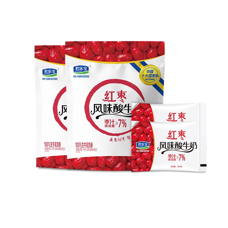 君乐宝乐钙原味红枣味酸奶100g*20袋益生菌发酵乳风味酸牛奶