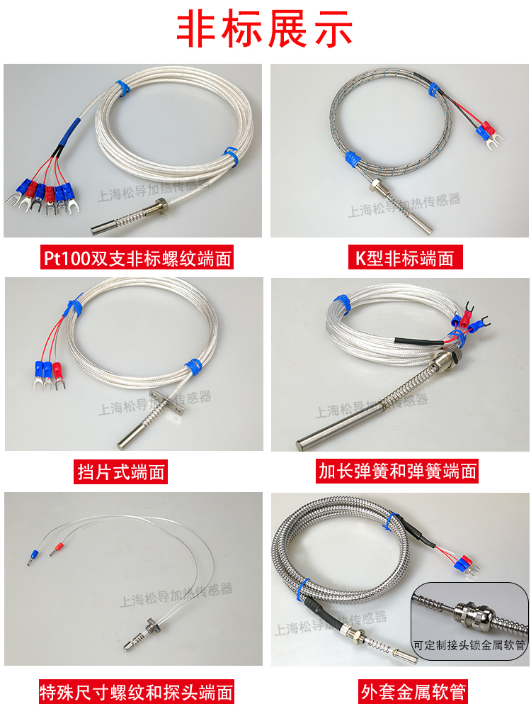 Pt100端面热电阻金属软管探头可伸缩温度传感器电机轴承表面测温