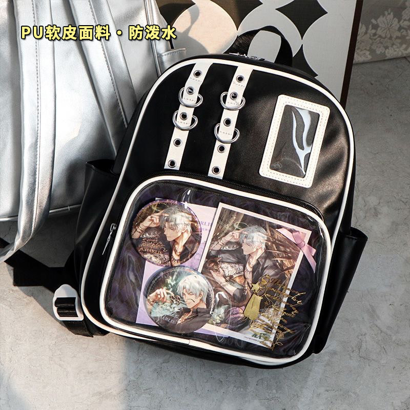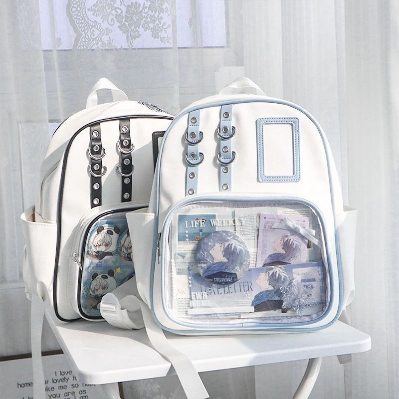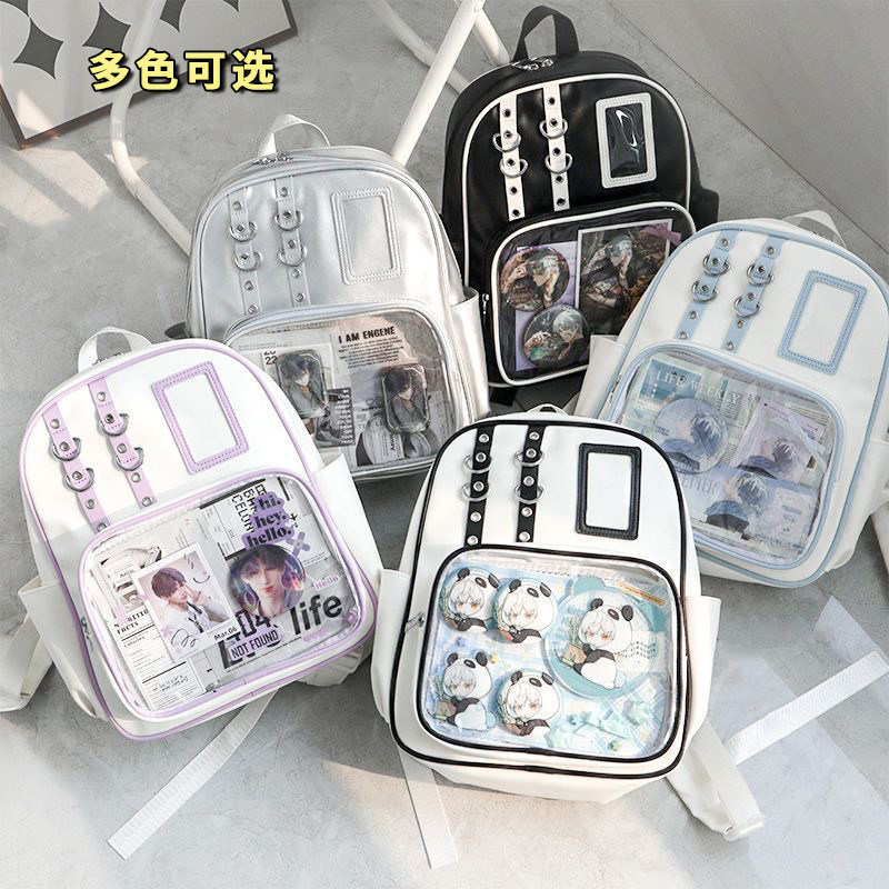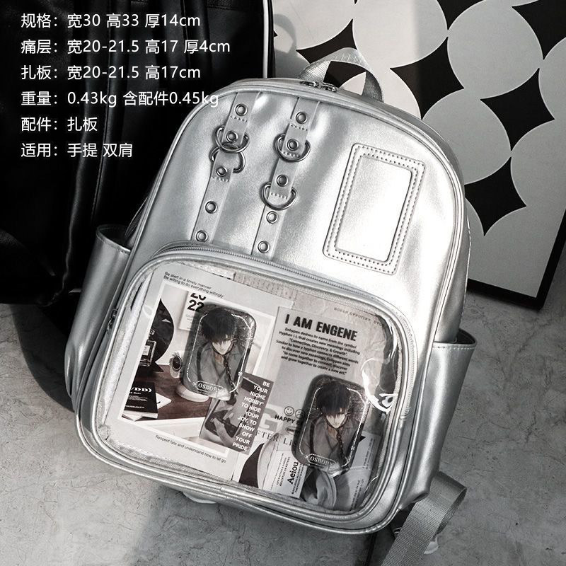 双肩包痛包女生书包大容量学生带透明层背包银色二次元日常小食量