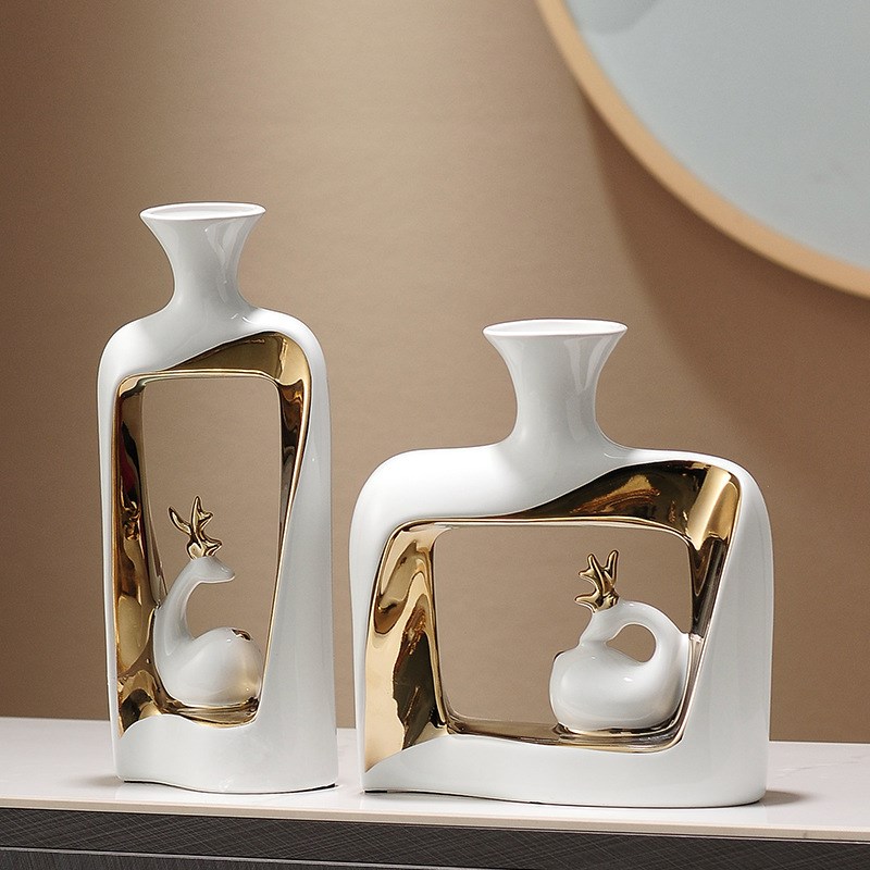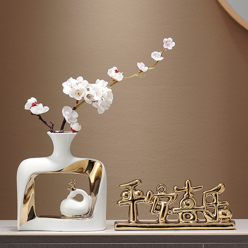 新中式电视柜客厅陶瓷花瓶u摆件高端大气上档次玄关家具家居装饰