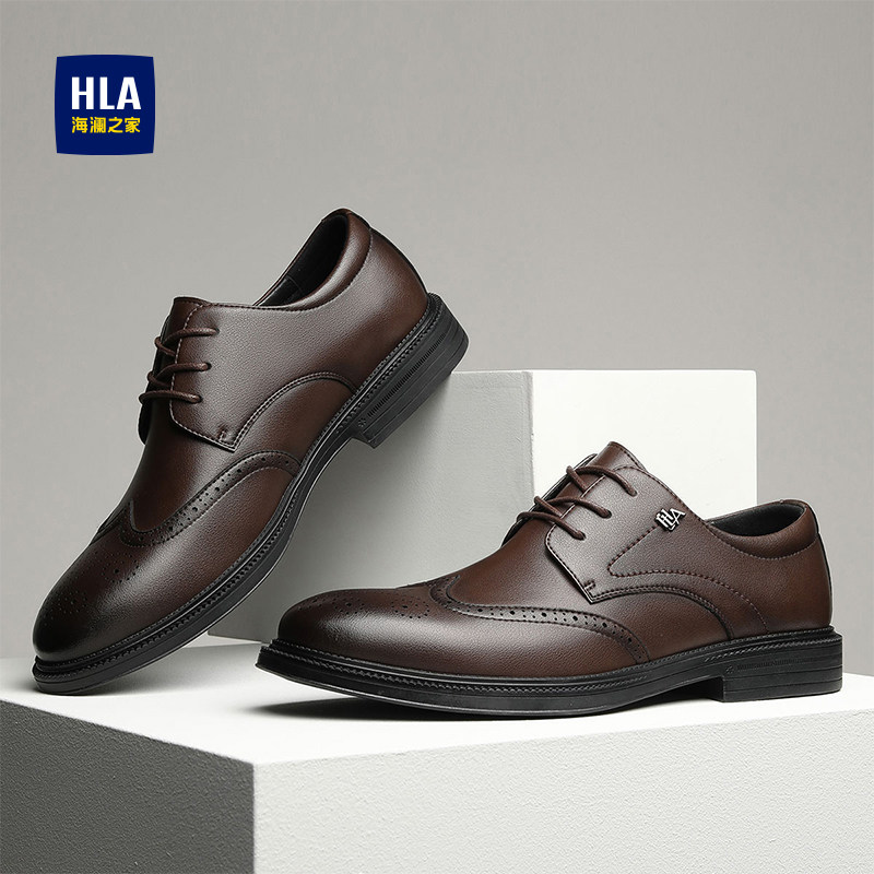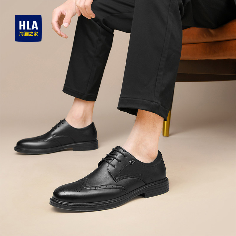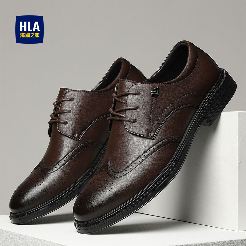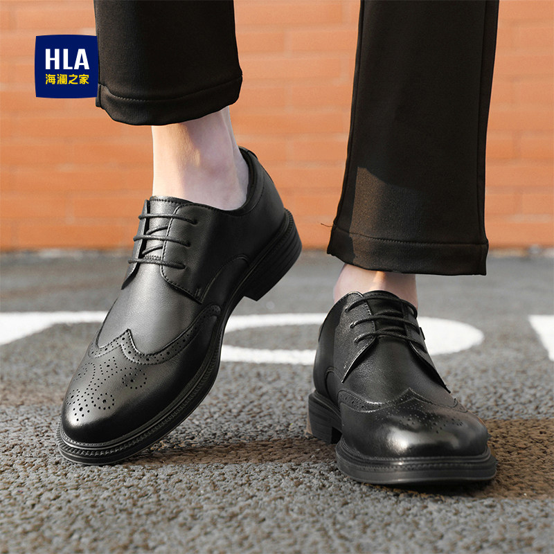 HLA/海澜之家男鞋秋冬新郎结婚鞋商务正装皮鞋布洛克鞋尖头透气男