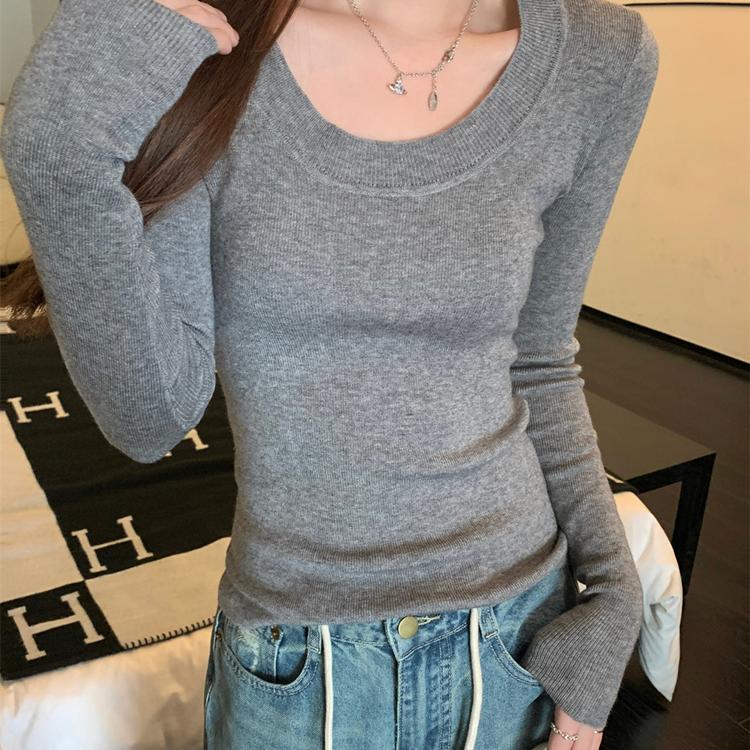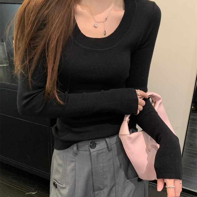春秋圆领长袖打底针织衫上衣秋冬内搭法式别致短款显瘦低领毛衣女