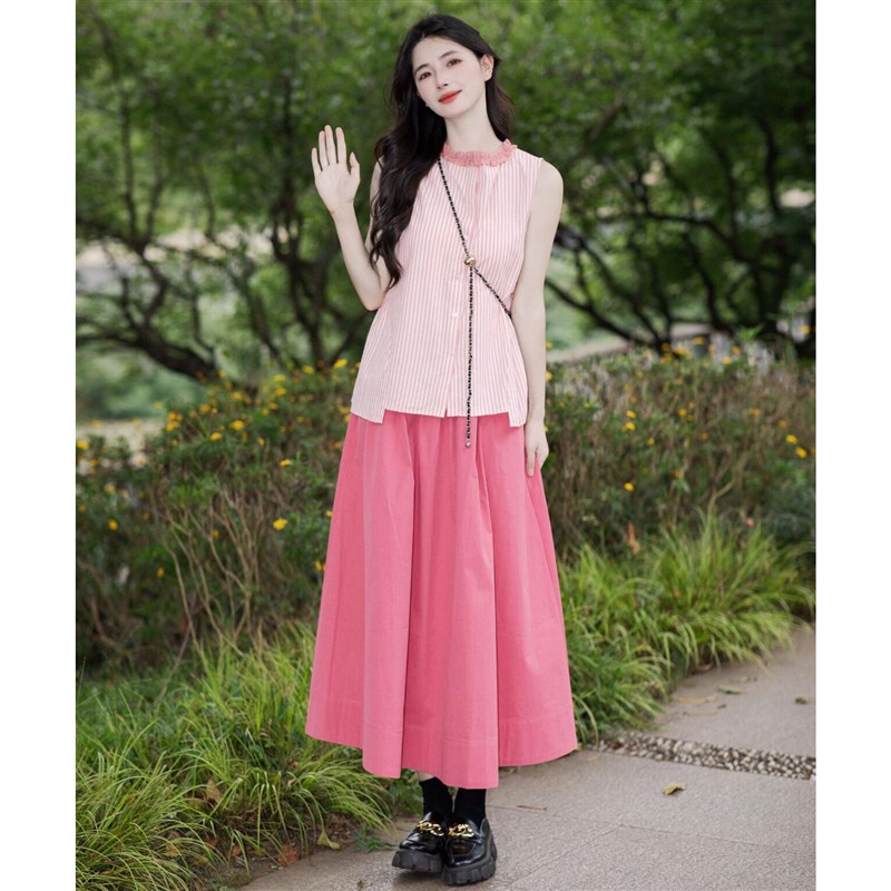 孕妇连衣裙套装夏季2025新款时尚D条纹薄款短袖上衣半身裙两件套