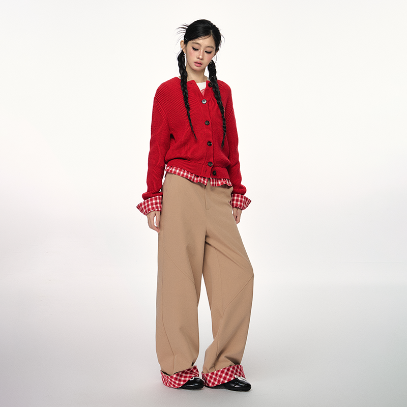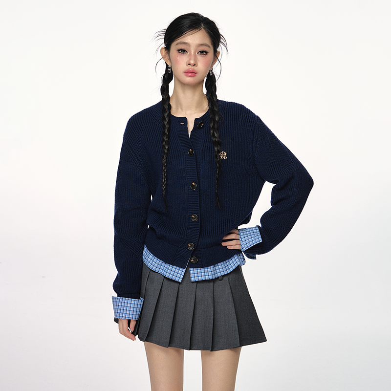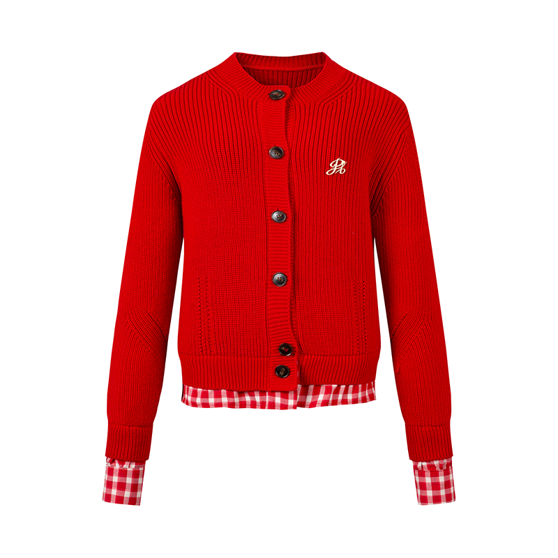 PUNCH新款三色假两件针织开衫百搭设计感拼接本命年新年氛围毛衣