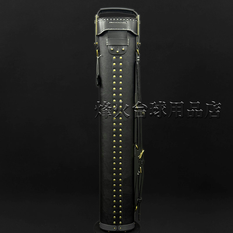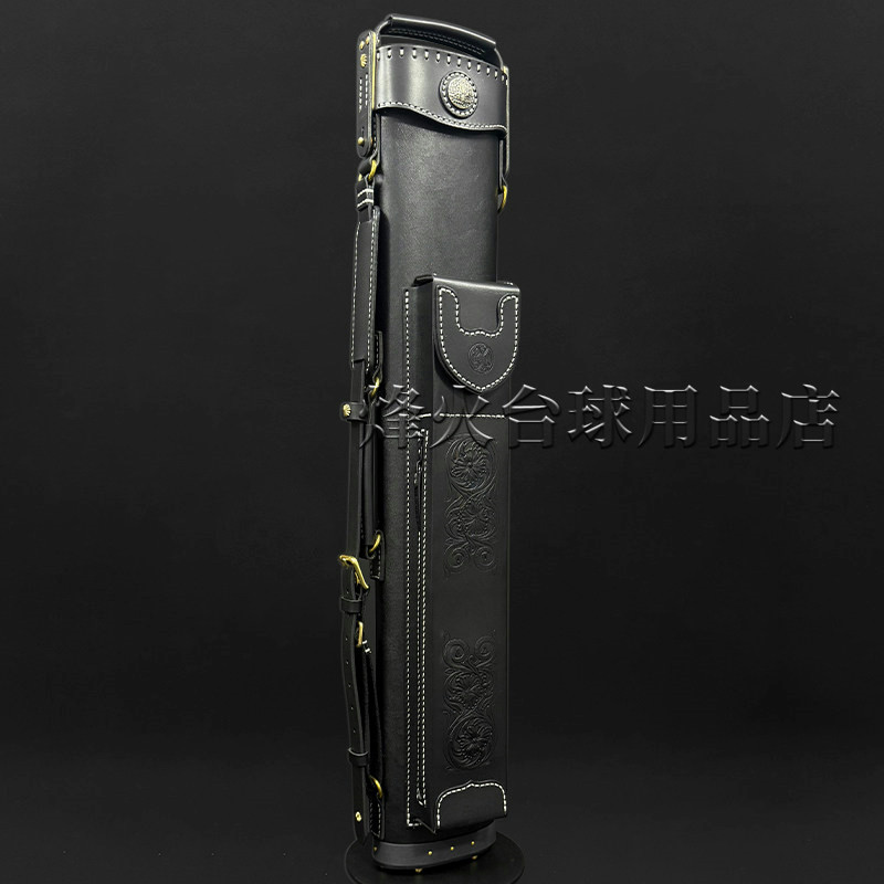 郑阳手制台球六孔杆桶黑骨黑色大头杆九球杆筒真皮雕刻大头杆桶