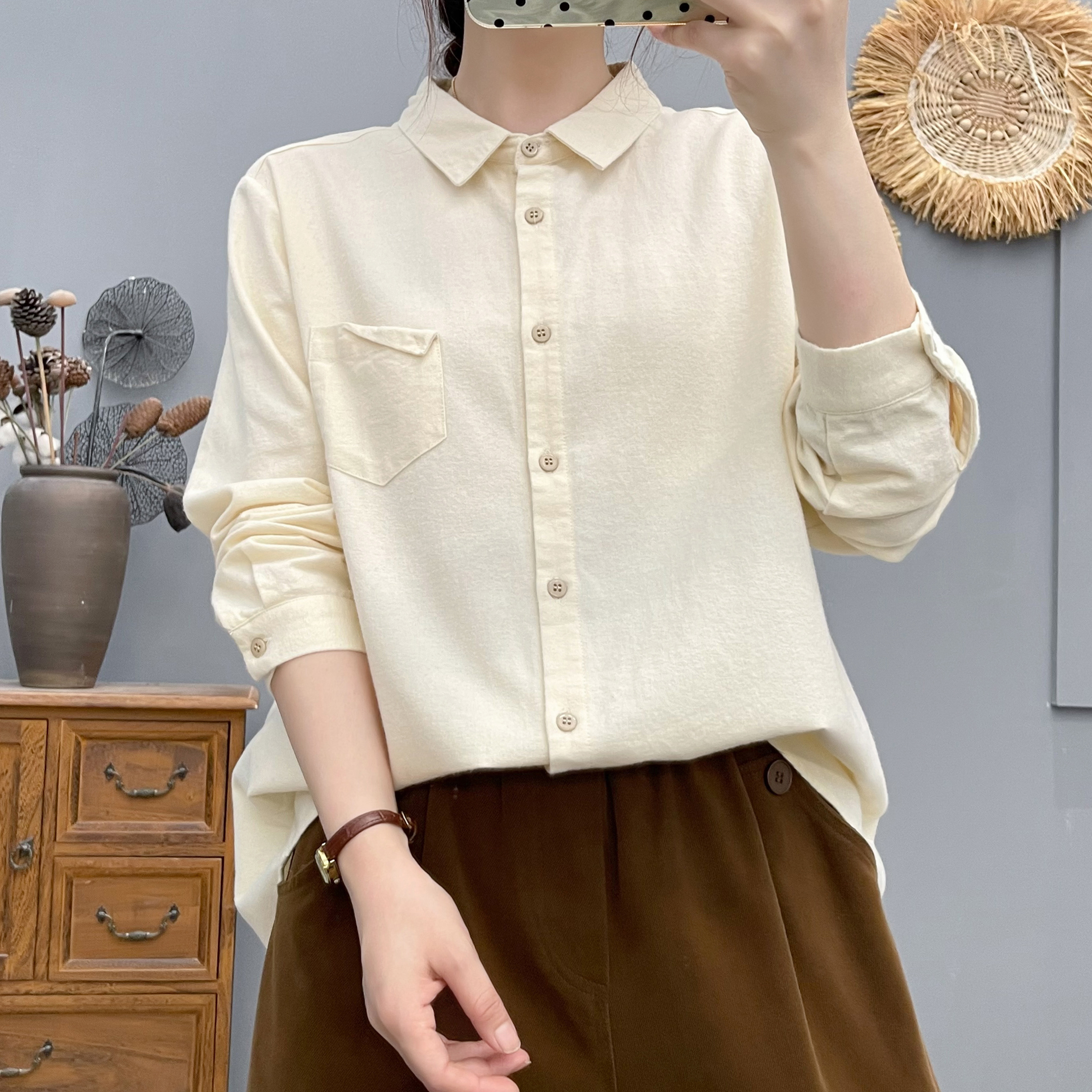春秋款磨毛棉长袖纯色衬衫女文艺休闲衫外套加厚打底衫百搭白衬衣