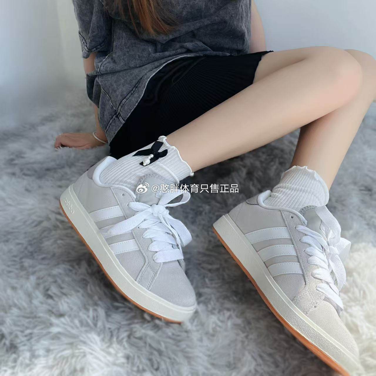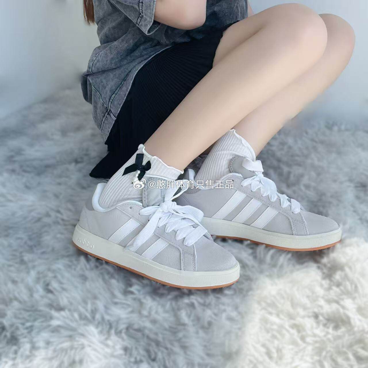 Adidas Grand Court Base00s男女同款灰白复古低帮休闲板鞋IH6185