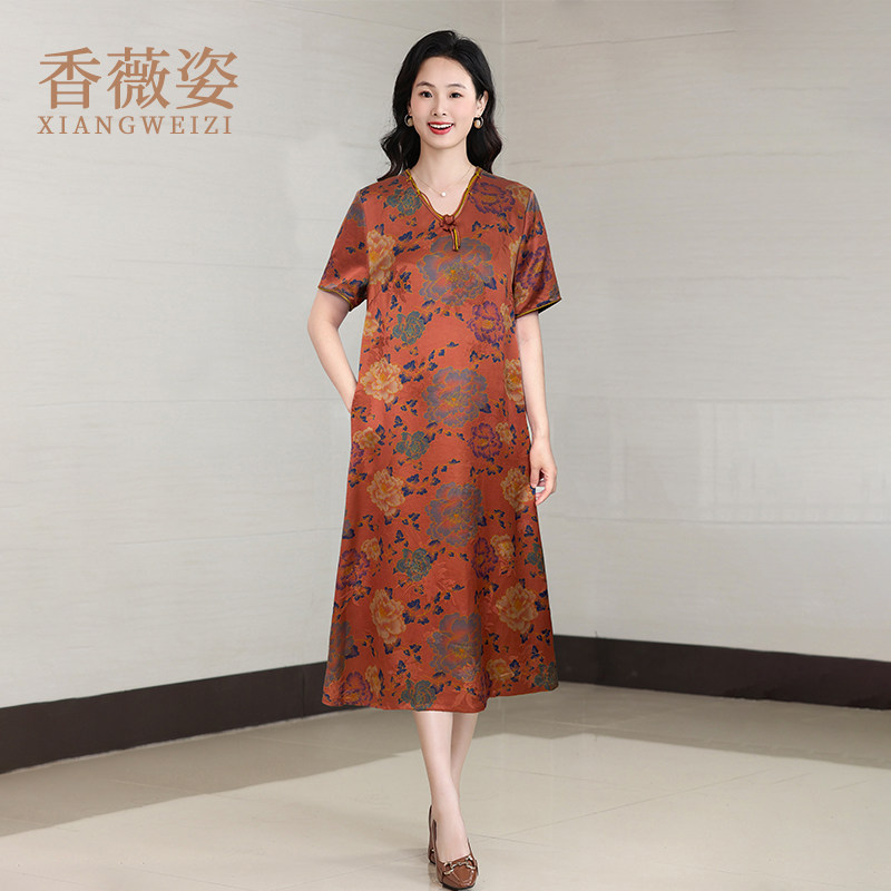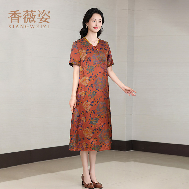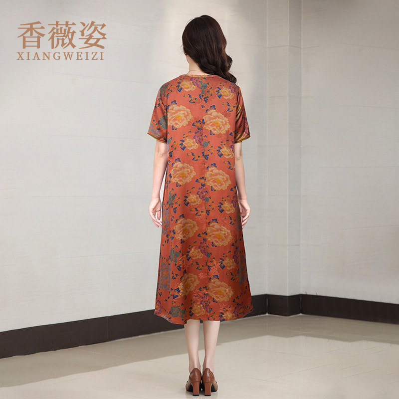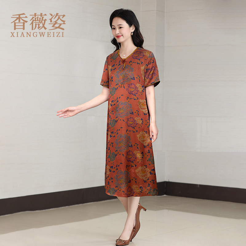 海南桑蚕丝香云纱连衣裙2025新款今年流行女夏妈妈装大码真丝裙子