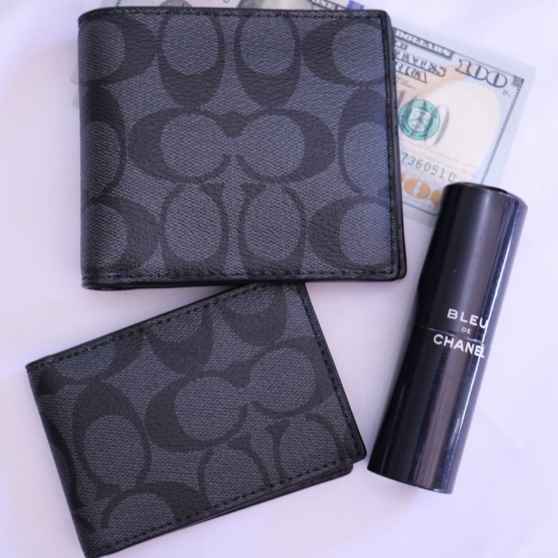 COACH/蔻驰男钱包logo印花老花短款折叠卡包手拿钱包夹层包