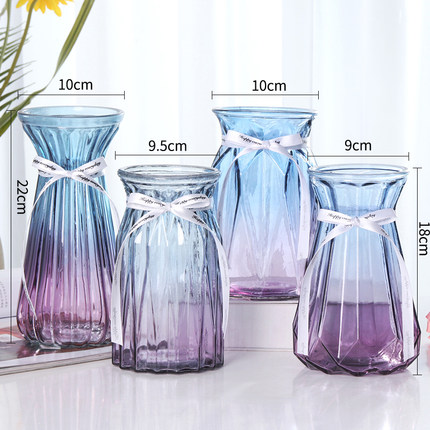 【四件套】玻璃花瓶彩色透明客厅摆件水培富贵竹百合 鲜花插花器