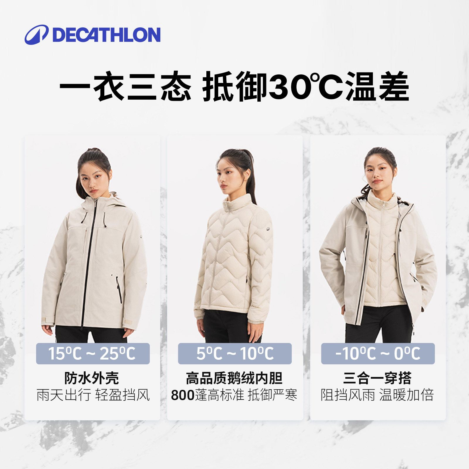 迪卡侬MH900冲锋衣男三合一女鹅绒户外徒步防水羽绒外套登山服ODW