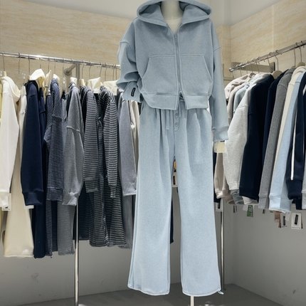 2025新款秋冬加绒套装宽松连帽卫衣阔腿裤两件套搭配一整套时尚女