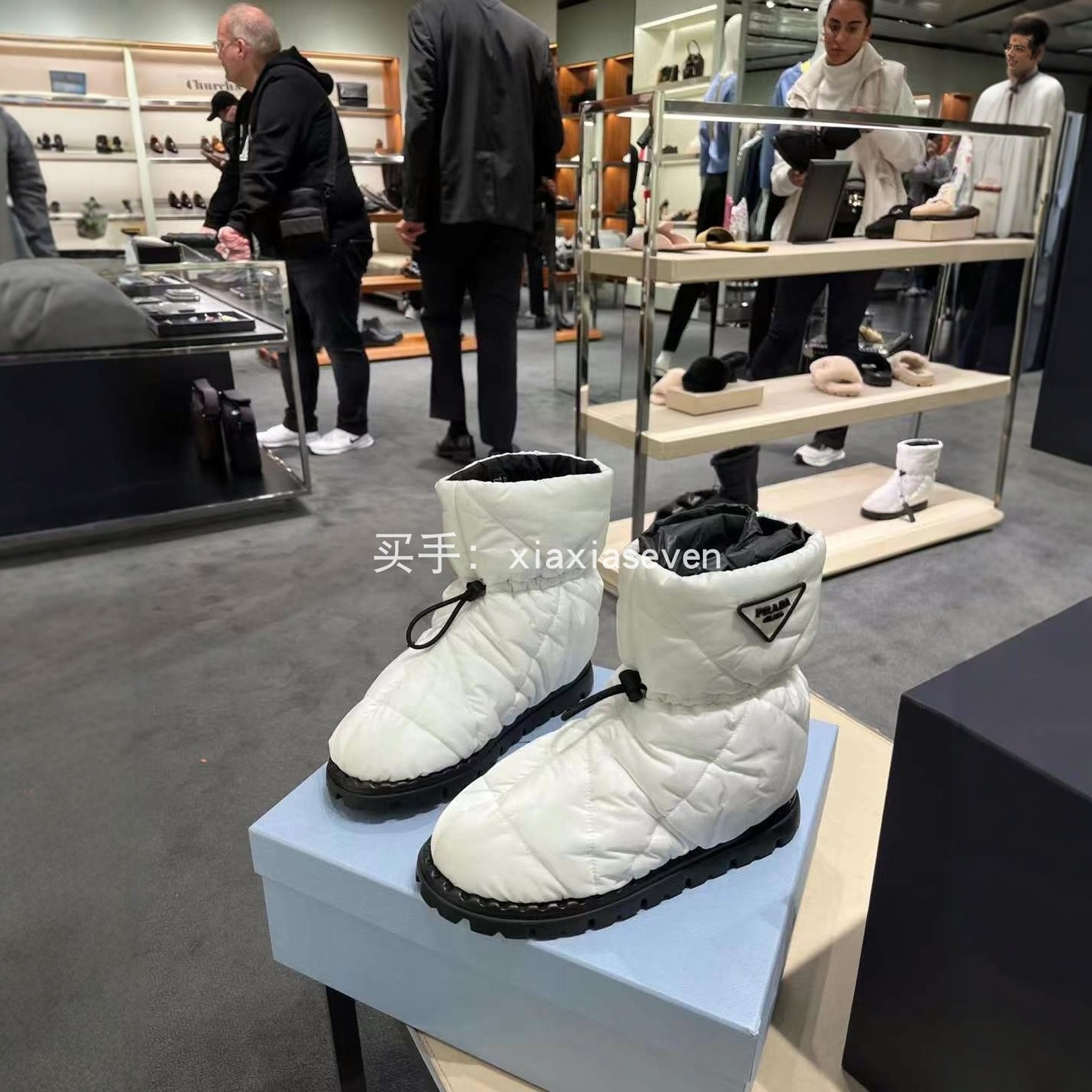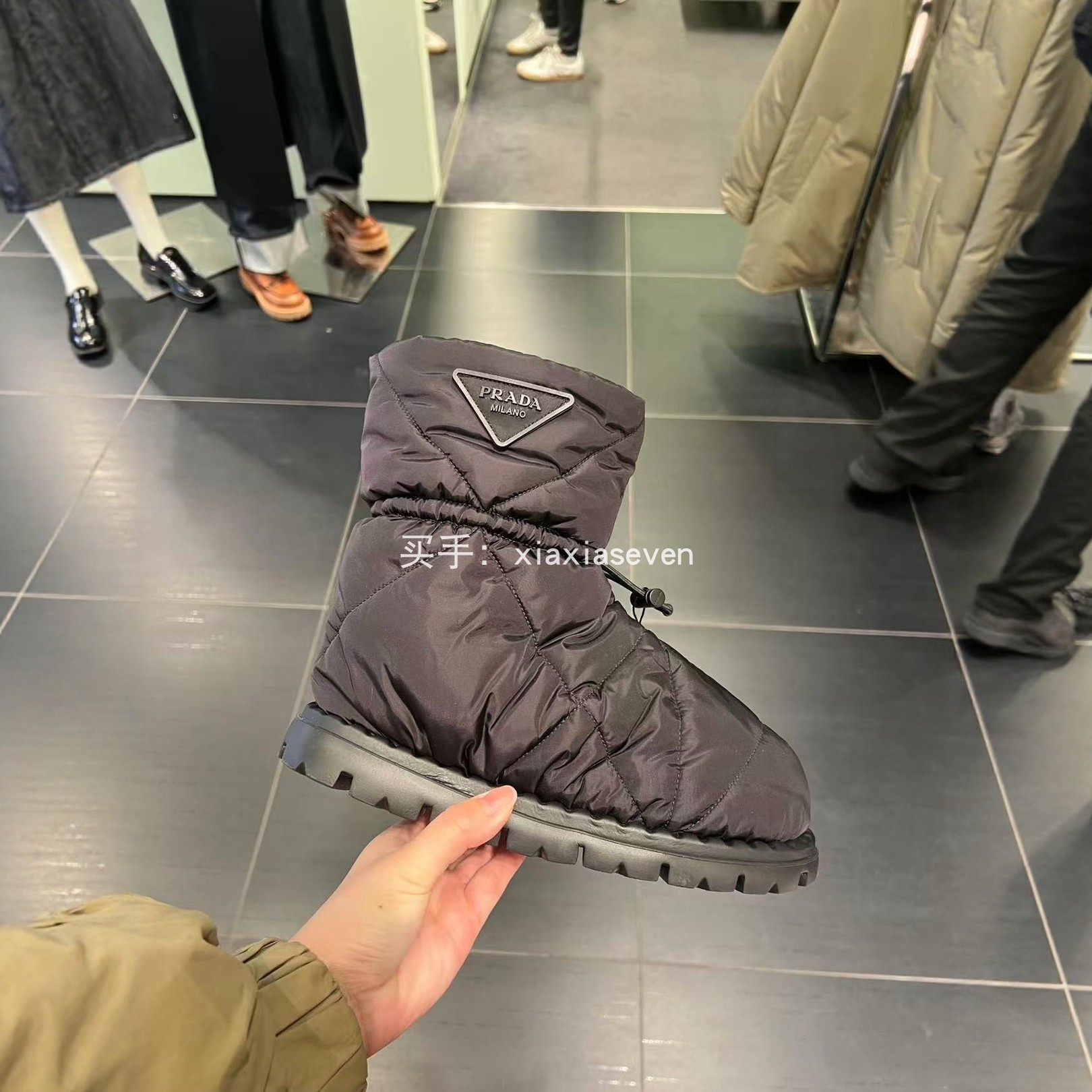 PRADA普拉达雪地靴抽绳三角标短靴女靴 法国黑五折扣代购 11.26 5