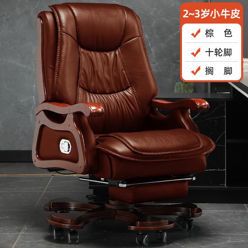 高档子真皮老板办公电室大班椅舒椅适久坐按摩椅家用脑椅实木办公
