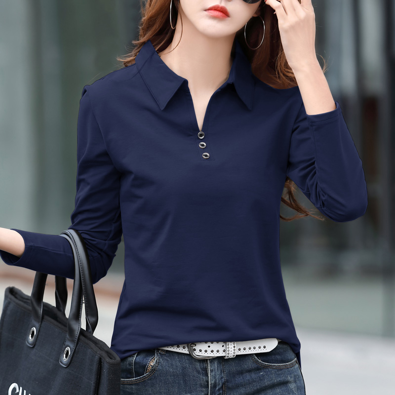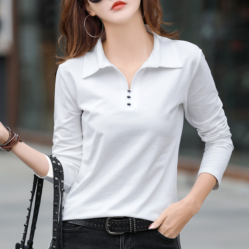 新款翻领纯棉长袖t恤上衣打底衫