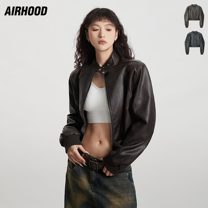 AIRHOOD 美式复古立领短款皮衣短款外套美拉德秋冬bm小个子夹克女