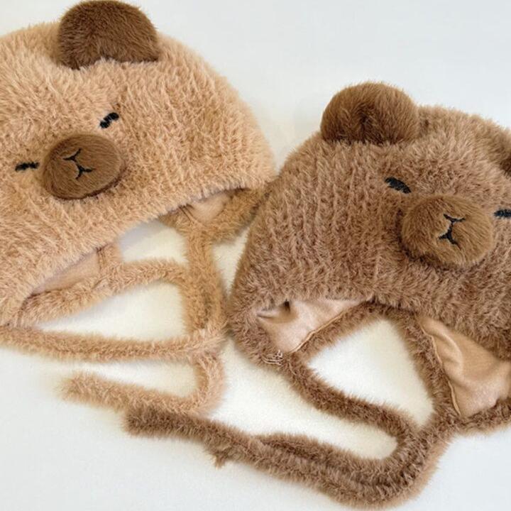 卡皮吧啦帽子儿童小动物男孩宝婴儿毛绒巴拉女春秋秋冬季早秋冬天