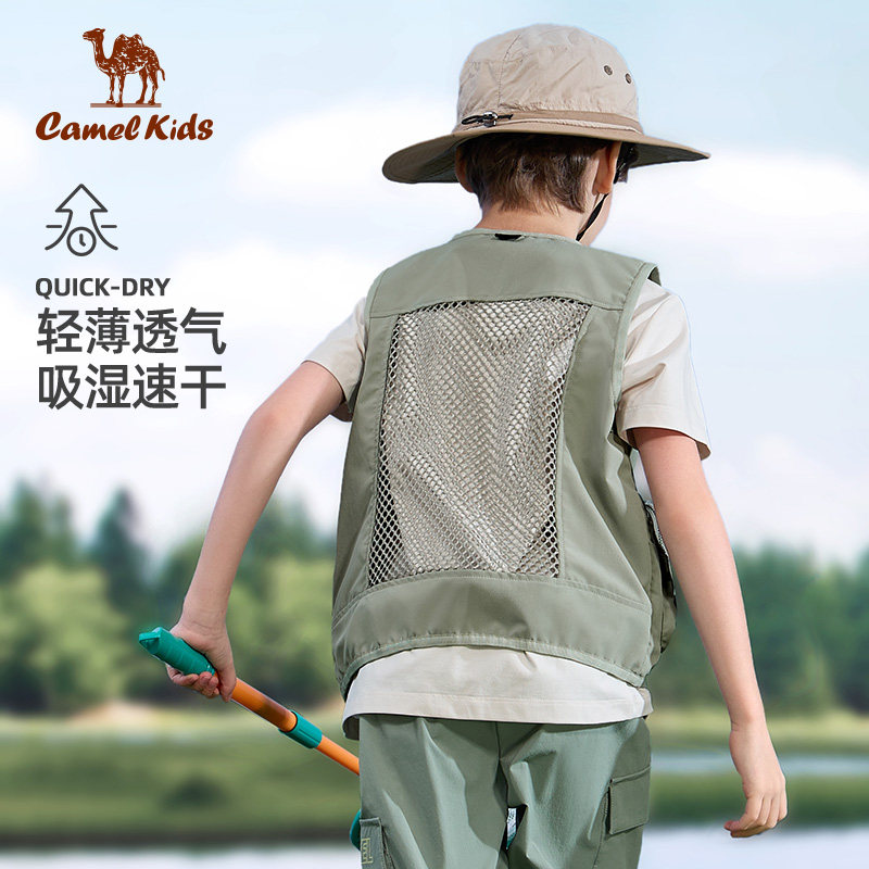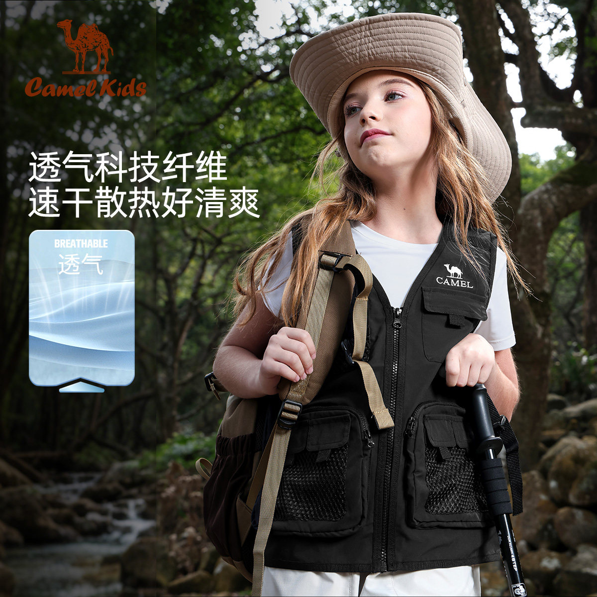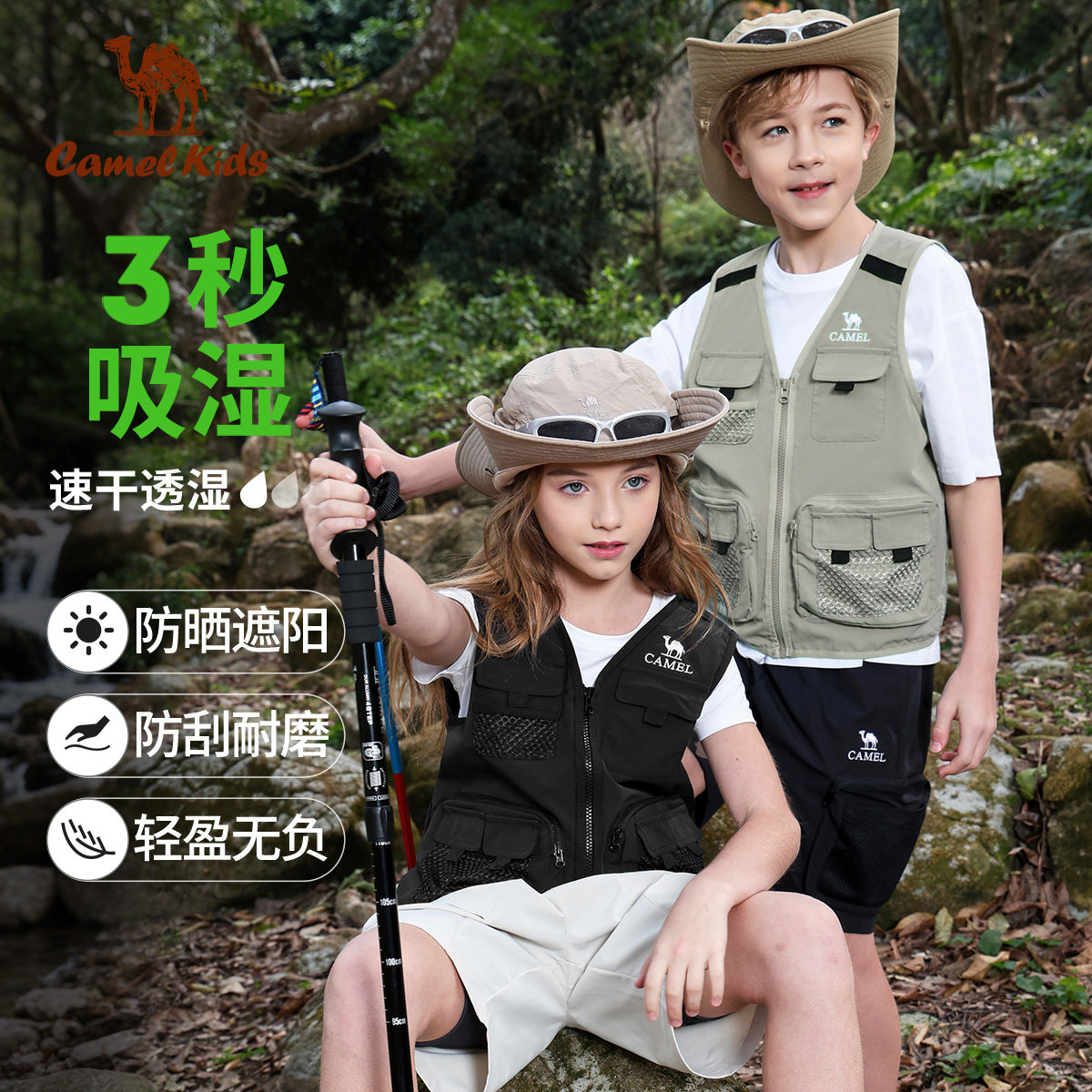 小骆驼儿童马甲2025新款户外登山服男童马夹背心中大童外穿潮坎肩