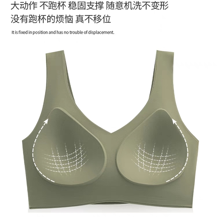 固定杯一体无痕内衣女大胸显小薄款大码美背睡眠文胸无钢圈背心式