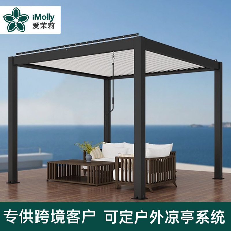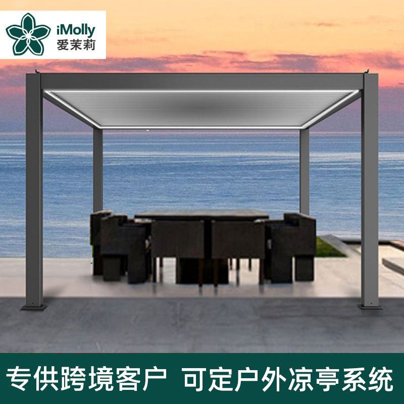 户外遥控电动百叶翻转现代凉亭铝合金阳光房别墅庭院花园遮阳雨棚