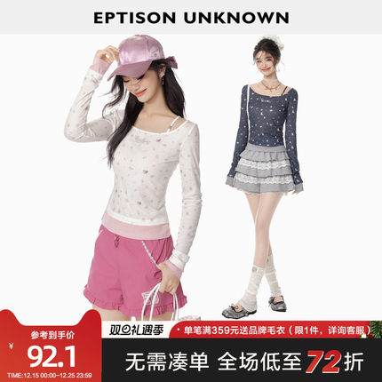 EPTISON长袖T恤女2025春夏新款短款甜辣少女风修身假两件印花上衣