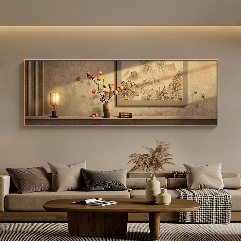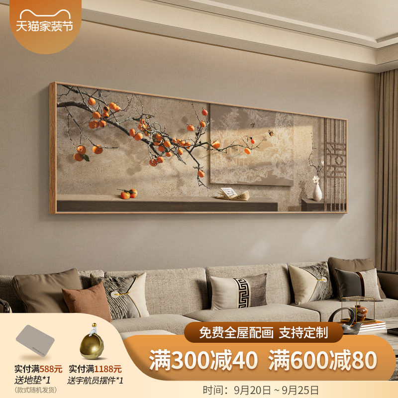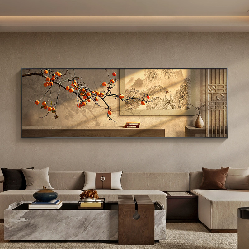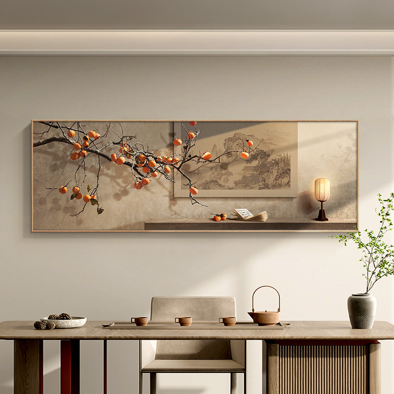 现货速发侘寂风客厅装饰画柿柿如意寓意好沙发背景墙面挂画禅意茶
