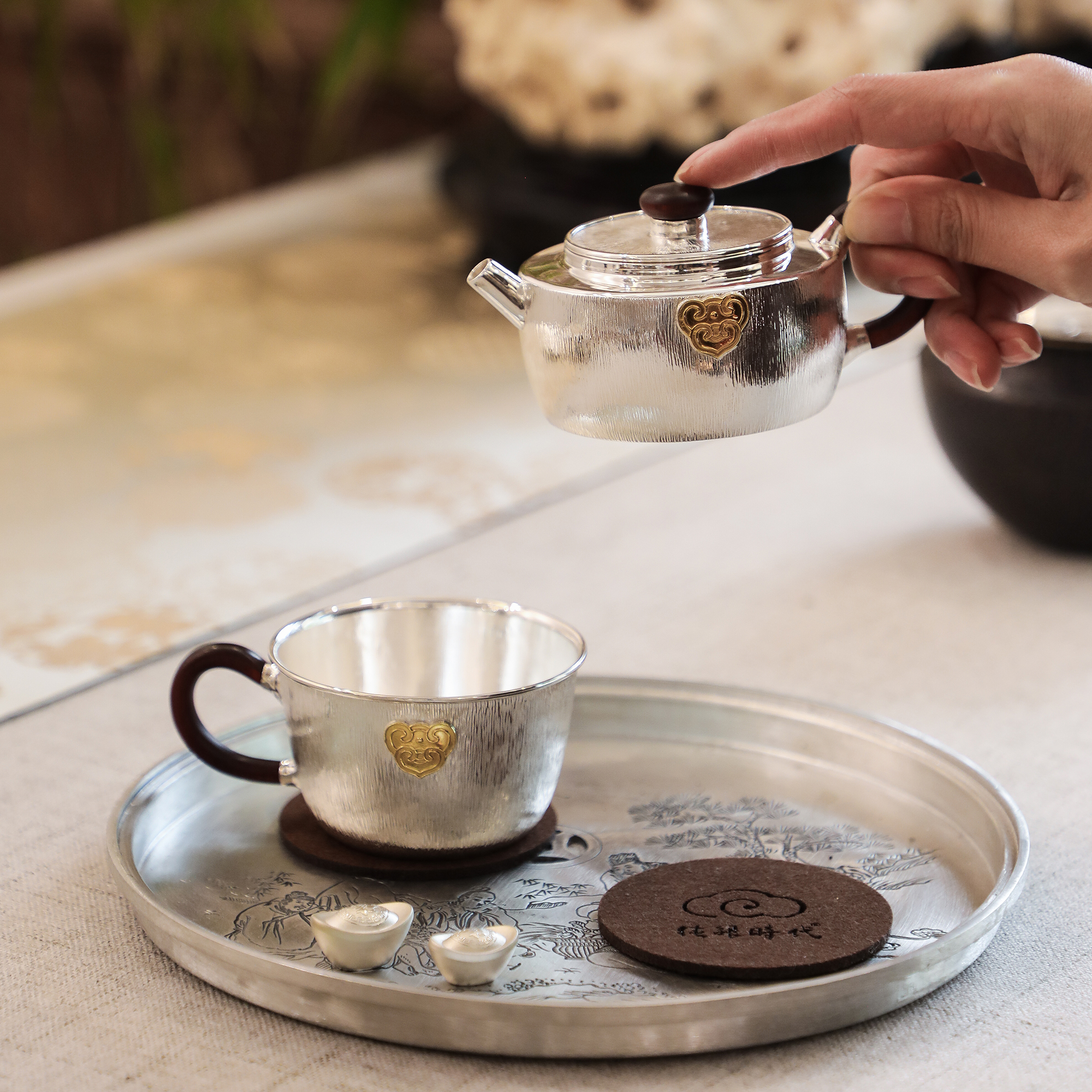纯银时代如意元宝足银999马克杯手工银杯咖啡杯日常办公家用160ml