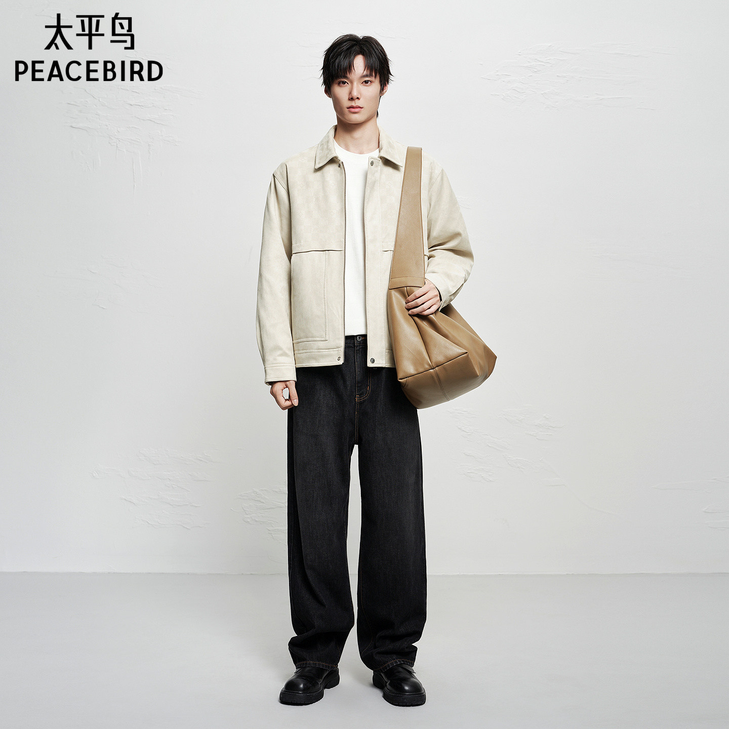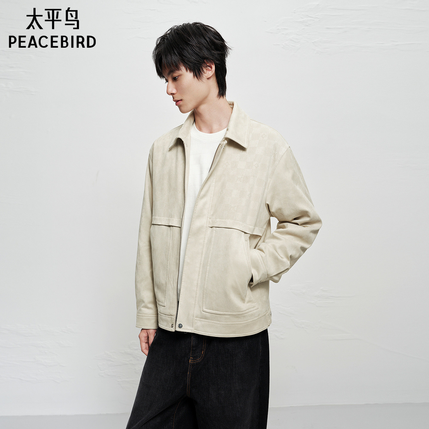 【商场同款】太平鸟男装满版提花羽绒服新款白鸭绒外套B1ACF4296