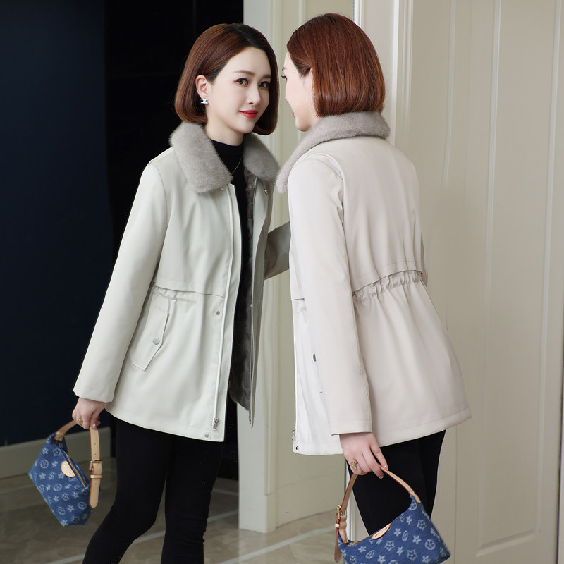 派克服女冬季新款水貂内胆可拆卸白色尼克服海宁皮草外套中长款