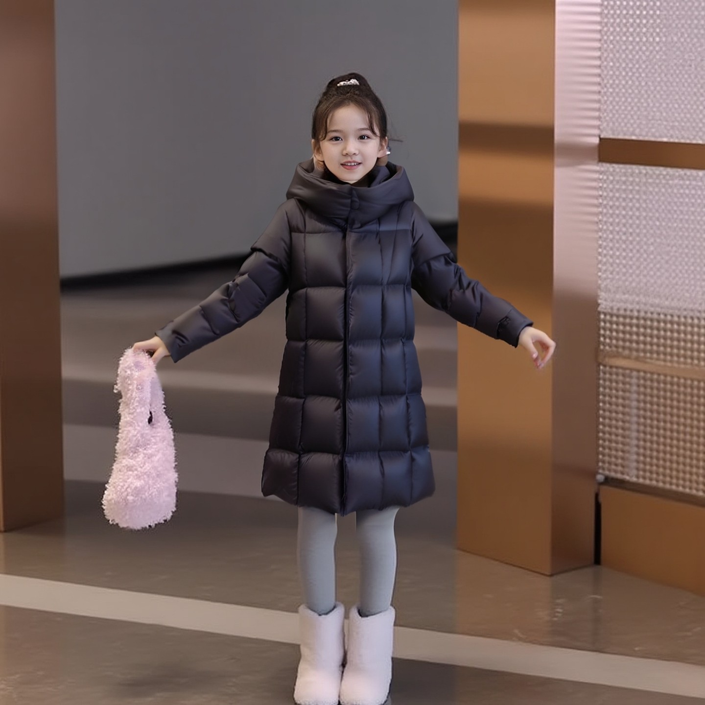 女童羽绒服冬装2025新款小学生女孩洋气时髦中长款保暖外套儿童装