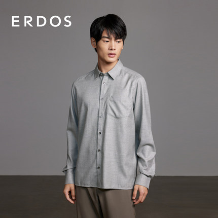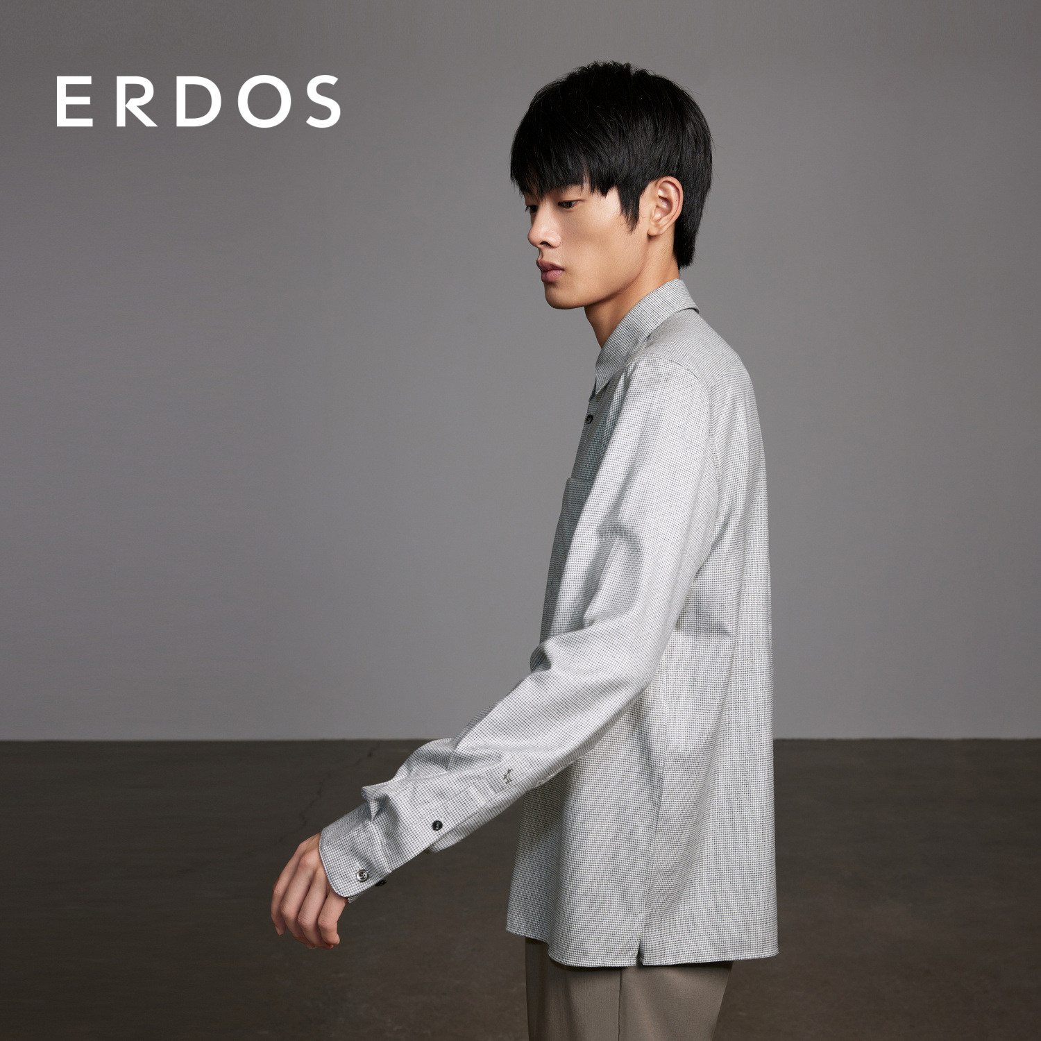 ERDOS 男装丝毛绒混纺衬衫春季款浅灰格纹薄款上衣商务休闲