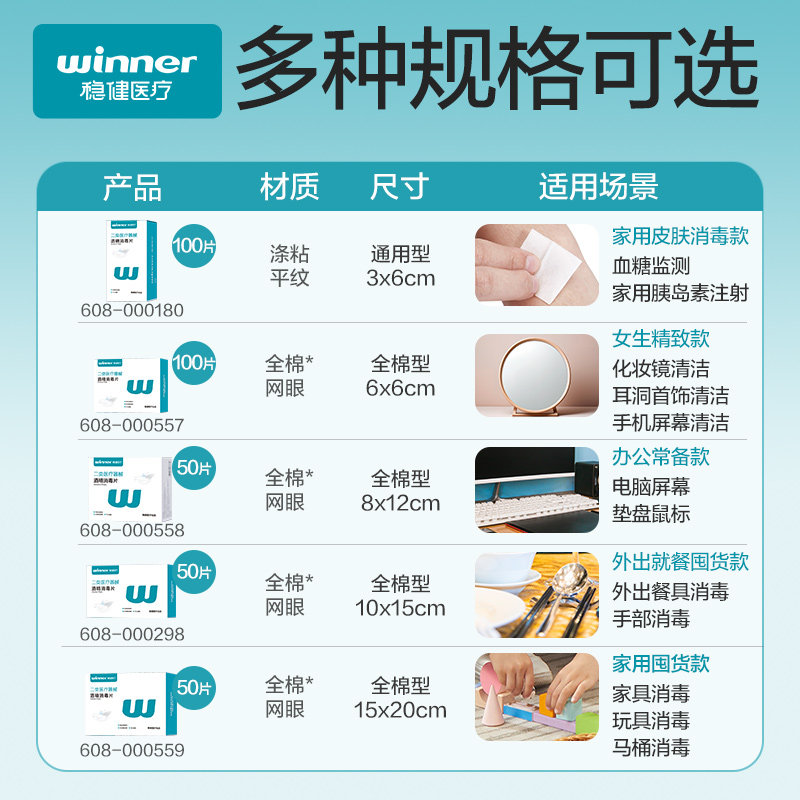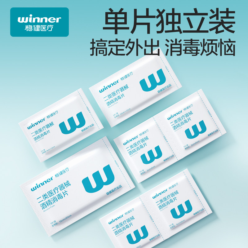 稳健医用酒精棉片100片一次性消毒片消毒棉贴擦手机屏幕清洁湿巾