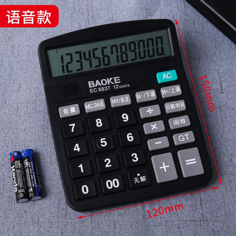 宝克EC6837财务语音桌面型计算器便携式12位显示大屏幕办公用