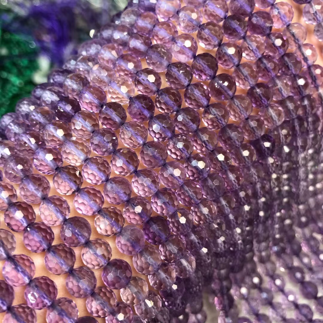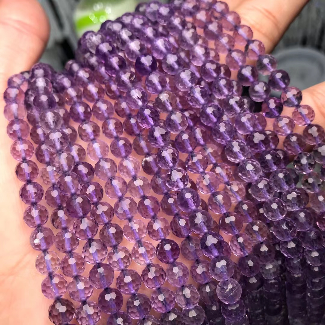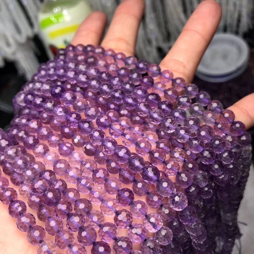 天然水晶 5A薰衣草紫晶128面足球面刻面切面散珠半成品手链项链配