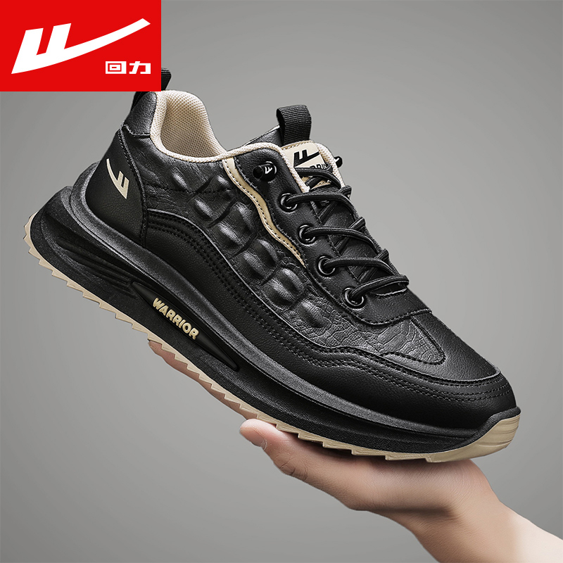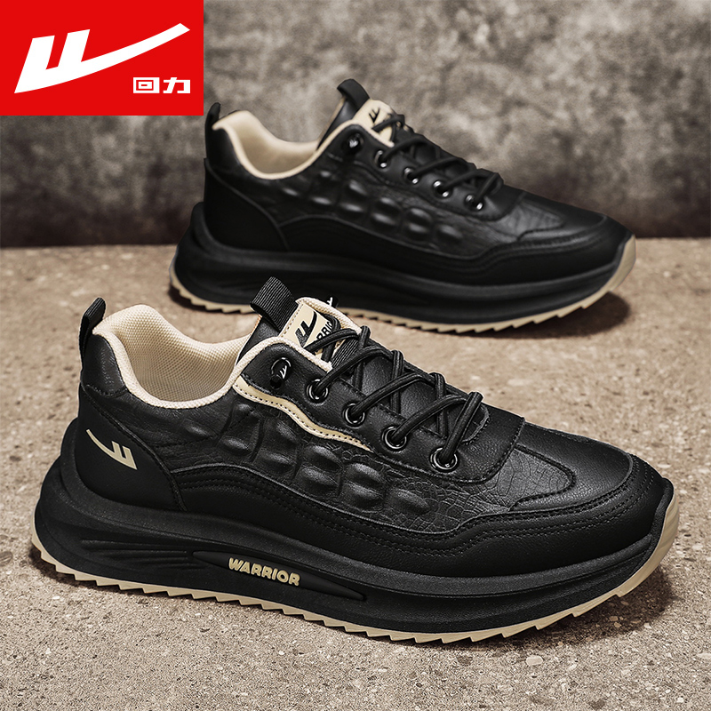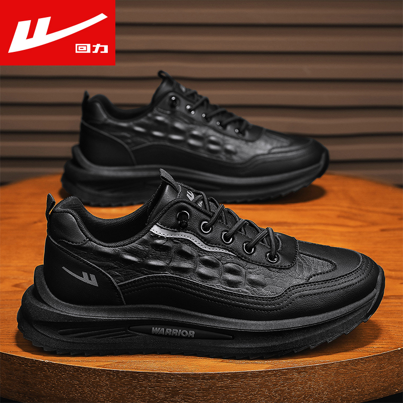 回力男鞋2025新款夏季休闲运动跑步防滑工作皮鞋黑色百搭老爹潮鞋