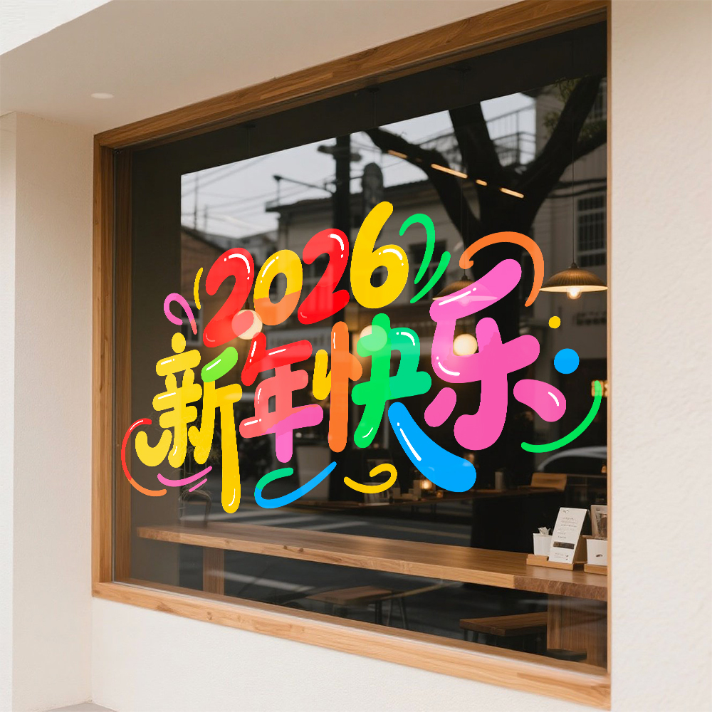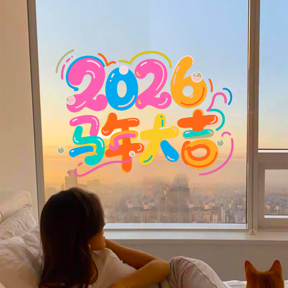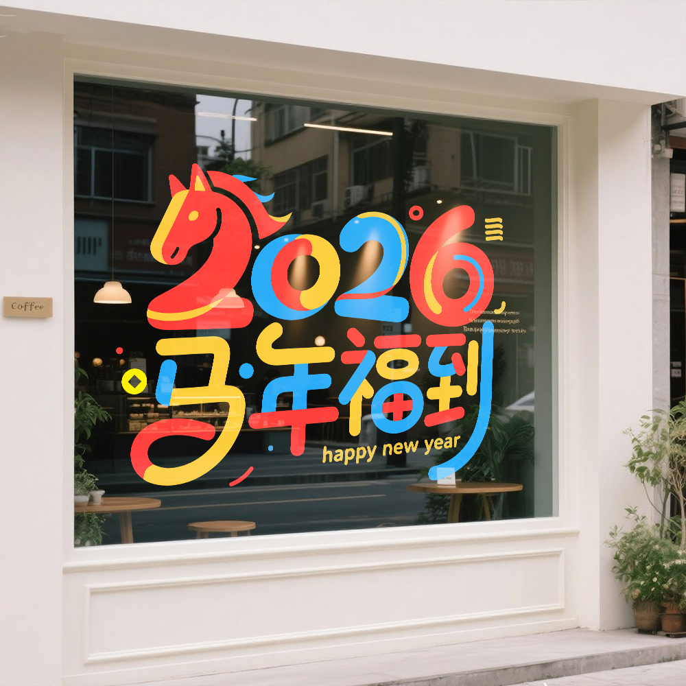 2026马年新年橱窗贴纸元旦商场餐厅门贴春节装饰玻璃过年静电窗花