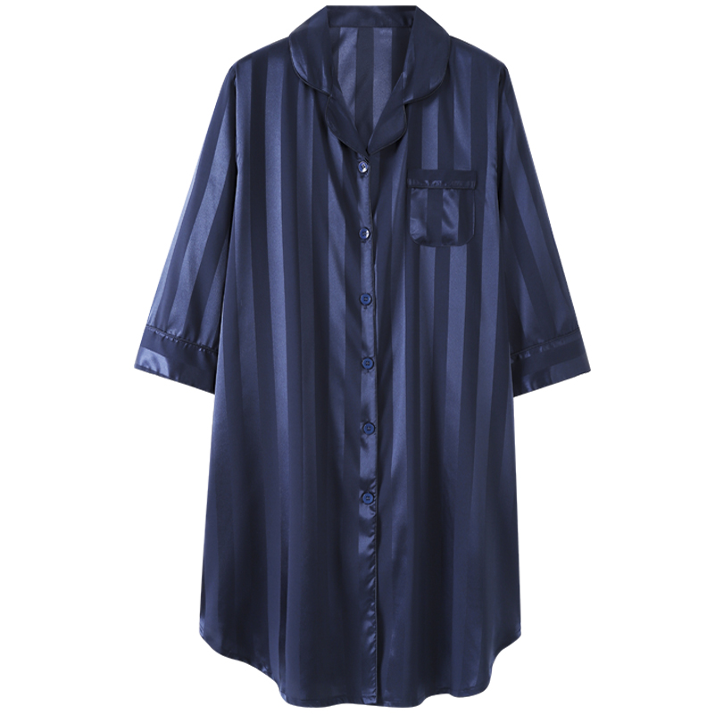 猫人睡裙女春夏季冰丝性感薄款七分袖真丝绸长款衬衫睡衣裙子