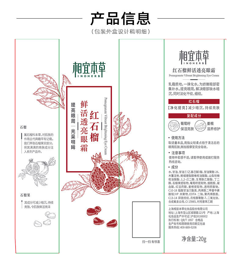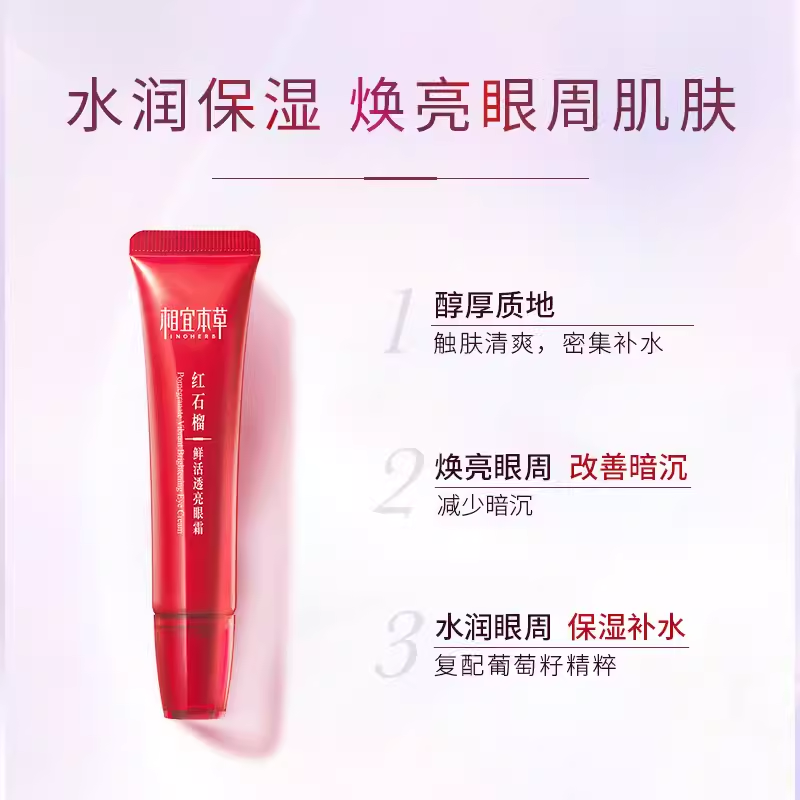 相宜本草红石榴鲜活鲜嫩透亮眼霜提亮眼周保湿补水官方正品女士