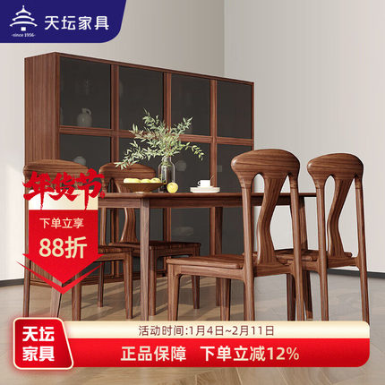 天坛家具家用新中式全实木餐椅乌金木材质休闲餐椅茶椅靠背椅木舍