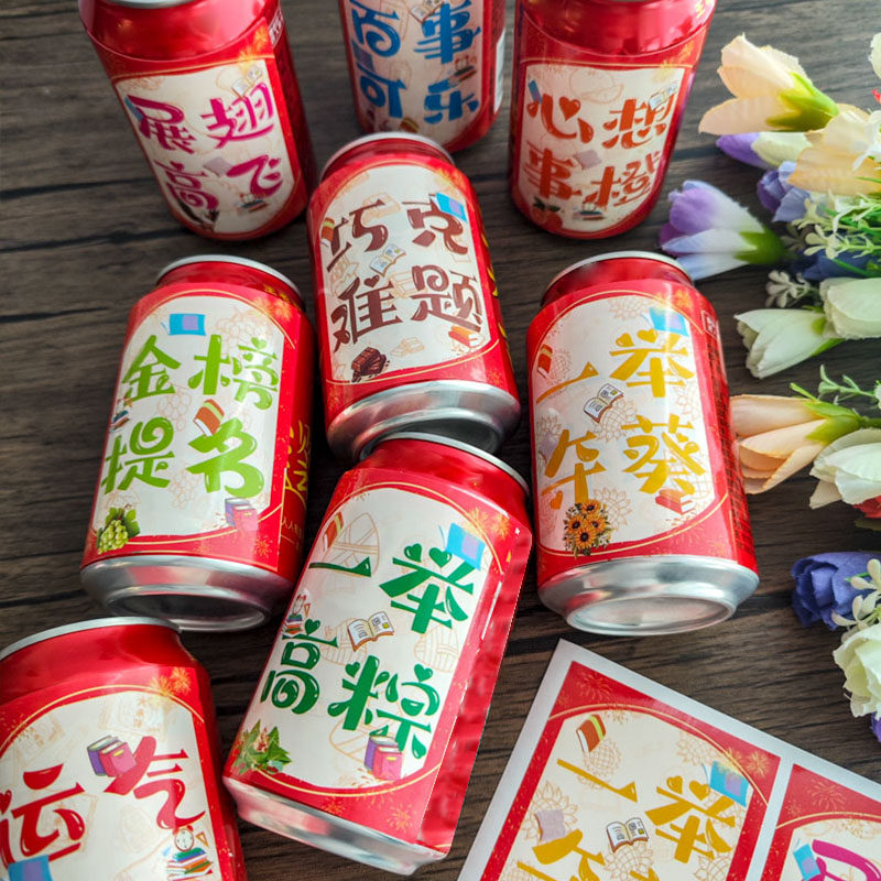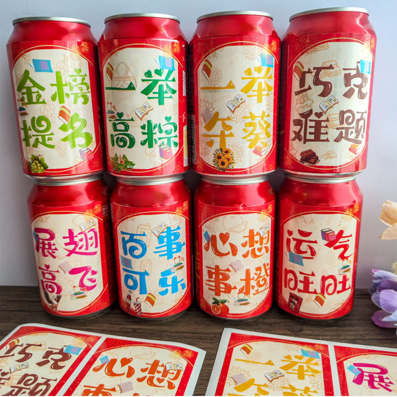 考试加油励志祝福语贴纸送中考高考百日誓师学生激励学习金榜题名礼物新年开学仪式感可乐易拉罐饮料瓶贴标签