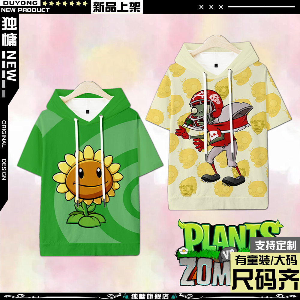 植物大战僵尸衣服游戏动漫儿童短袖T恤男女中小大童亲子装冰丝夏