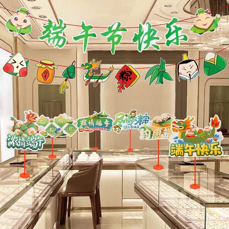 端午节手举牌拉旗挂饰装饰品活动氛围场景布置粽子道具桌面摆件