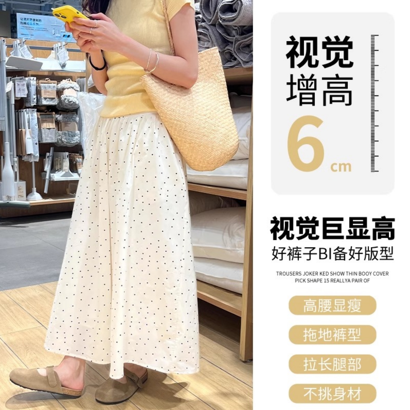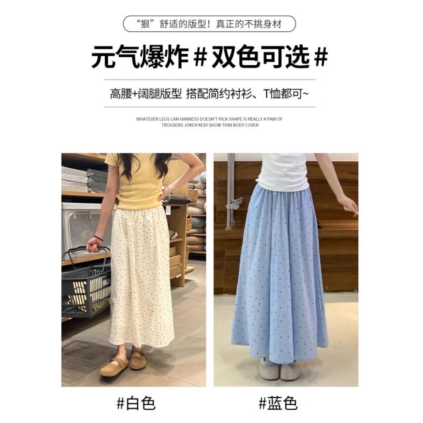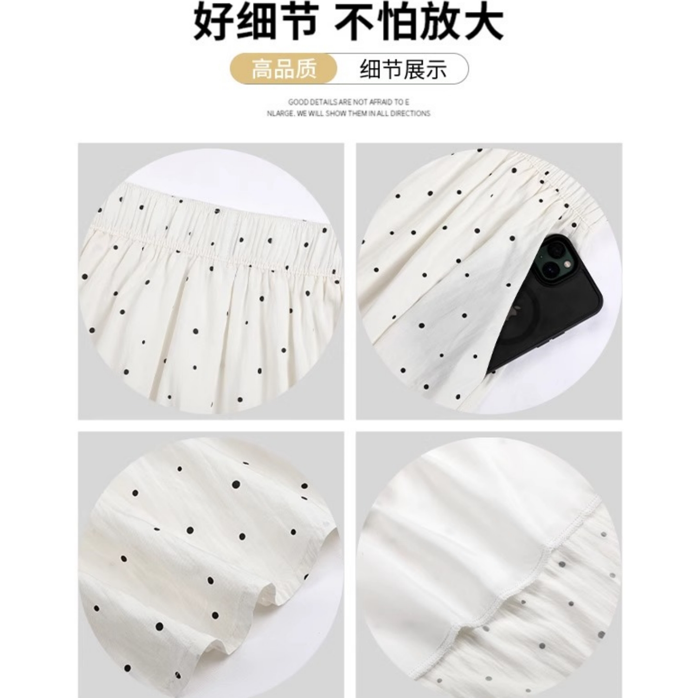 韩系杏色波点半身裙女夏2025新款高腰遮胯宽松显瘦小个子a字伞裙