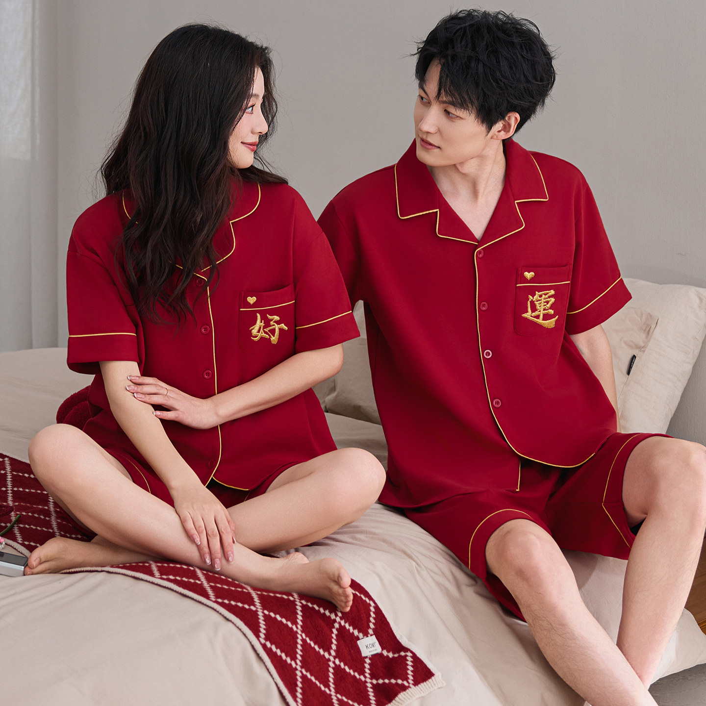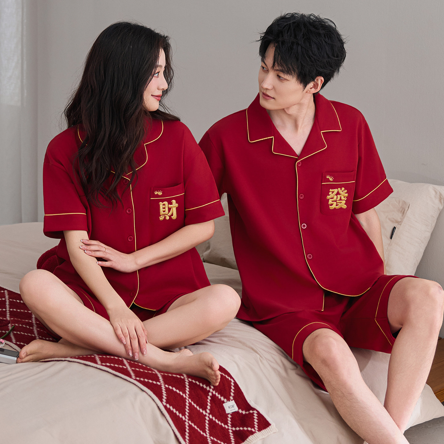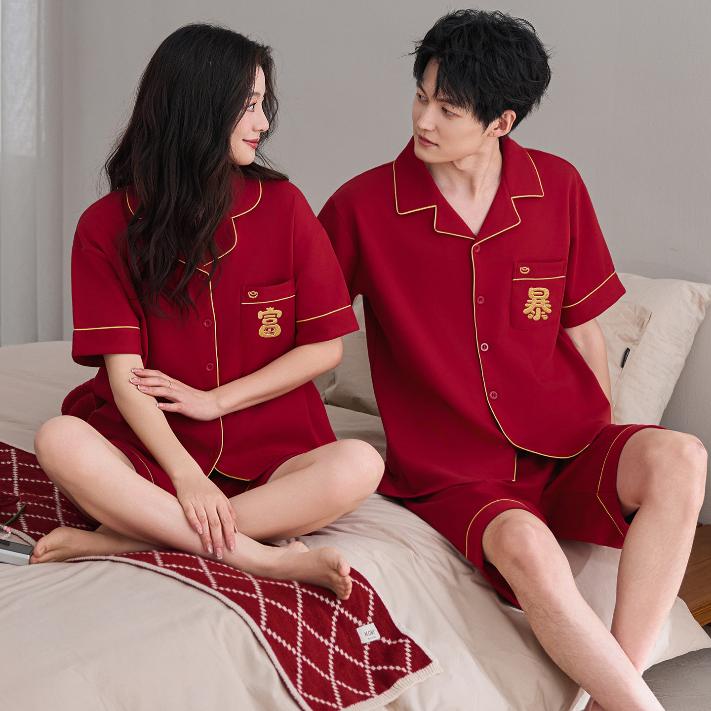 情侣睡衣夏季纯棉短袖本命年红色男女特大码套装240斤300斤6XL7XL