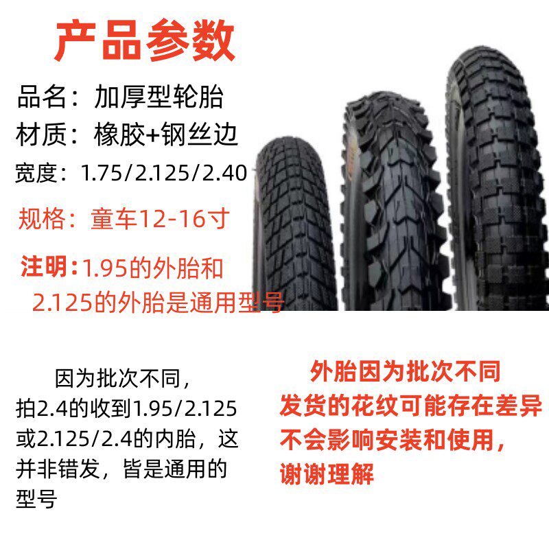 儿童自行车内外胎轮胎12/14/16寸18×2.125/1.75/2.5折叠童车轮胎