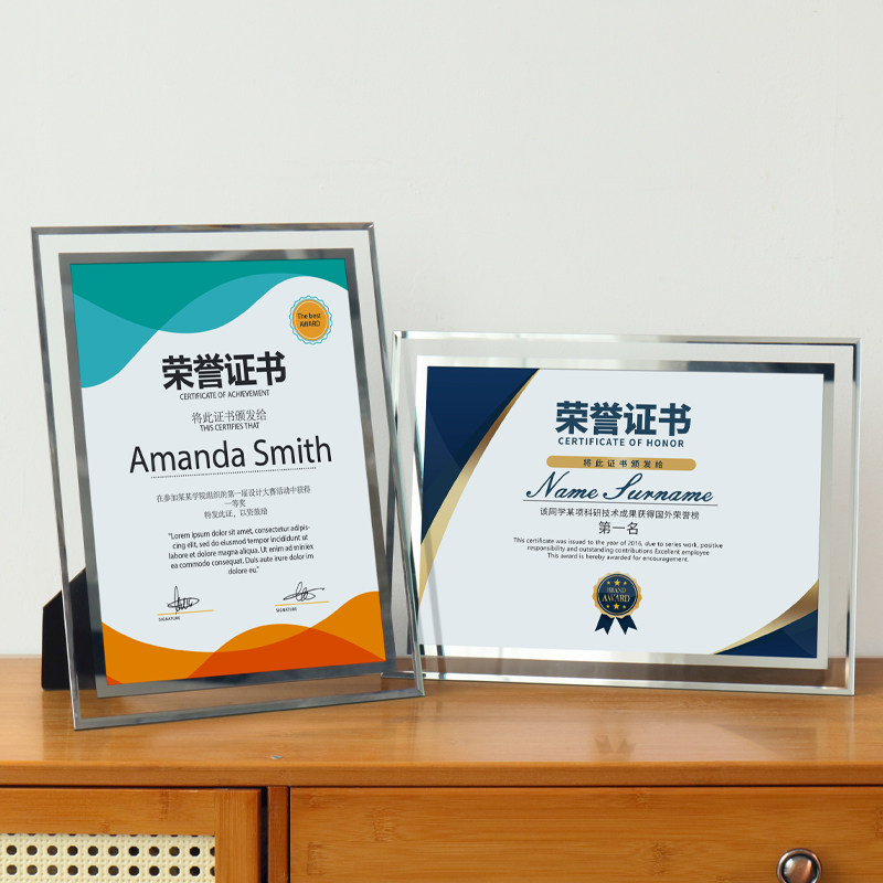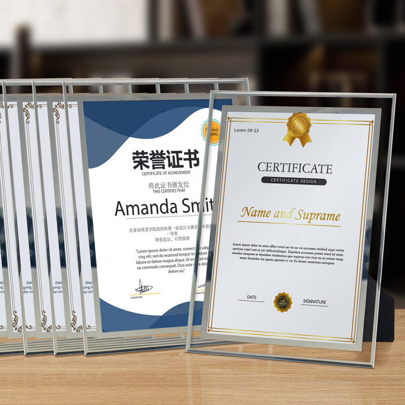 a4透明证书框摆台玻璃荣誉证书证件授权书奖状展示相框架A5B5装裱