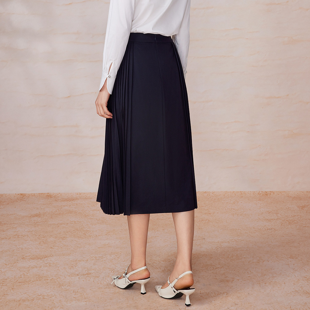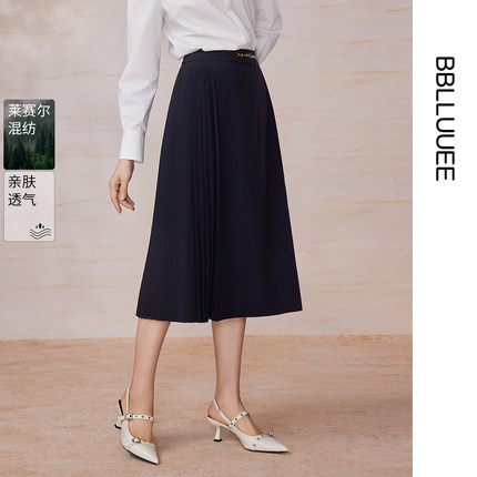 BBLLUUEE/粉蓝衣橱2025春秋装新款时尚轻职场百搭压褶A字半身裙女