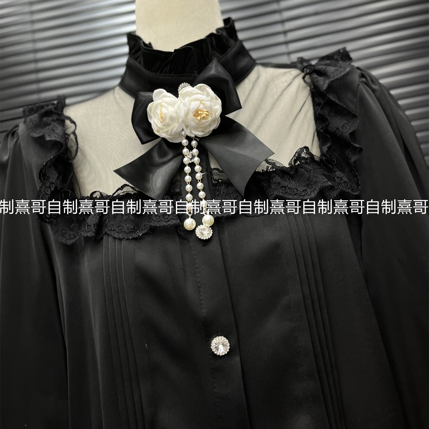 小香宫廷风重工镶钻蝴蝶结蕾丝花边设计感衬衫女气质减龄短款小衫