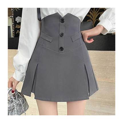 黑色收腰西服开叉a字短裤裙女春秋欧货超高腰修身设计感半身裙
